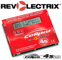 REVOLECTRIX Cellpro 4S balanserings laddare Laddaren har tre automatiska laddlägen där man ställer 1C, 2C eller 3C laddning (upp till max 4A) beroende på vilka paket man ansluter. Laddaren känner då av vilken kapacitet paketet har och ställer automatiskt in korrekt laddström för det paketet tackvare dess unika ?Fuel Gauge? teknologi. Man kan även ställa in laddströmmen manuellt från 0.25-4A. - Laddar Li-Po eller A123 celler (Li-Fe) - Laddar ett paket 1-4 celler - Max 4A laddström - Automatisk lagringsladdnings mode (ej för Li-Fe), - Uppdaterad LCD skärm som visar laddinformation och paketets ?bränslemängd? (Fuel Gauge). - Kallväders mode (avslutar laddningen vid 4.1V istället för 4.2V för att ge batterierna längre livslängd). - Den aktiva integrerade balanseringen av cellerna kontrolleras av en mikroprocessor kontinuerligt under laddningen. Detta är anedningen till varför Cellproladdarna laddar Lithiumpaketen snabbare och säkrare än andra shunt-typer av balanserare. Shuntar garanterar inte att en cell går över 4.2V. Storlek: 105 x 87 x 17 mm Vikt: 215 g Strömmatning: 10-16V DC Utmatning: En enkel kanal för alla Cellpro batteripaket. Beställ separata adaptrar för att passa andra Lithium paket ? se här nedan.