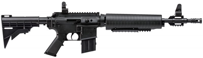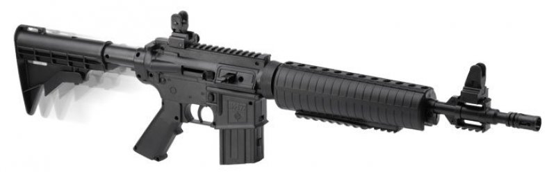 Äntligen finns Crosmans beprövade multipump-system i ett skönt taktiskt AR15/M4-utförande. M4-177 pumpas upp till önskad utgångshastighet, max 200m/s (max 10pump) och kan avfyra både rundkulor och diaboler. Vapnets magasin rymmer 350stålrundkulor och en speedloader med 5st diaboler. Karbinen har precis som originalet, justerbart dioptersikte (med två storlekar), utdragbar kolv och flera rails för montage av tillbehör. Det rekylfria systemet och den räfflade pipan gör att M4-177 har möjlighet att skjut prick med god precision.