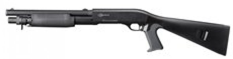 Vårt mest effektiva fjäderdrivna vapen som skjuter svärmar med kulor! En snabb pumpladdning laddar vapnet och är då redo att skjuta iväg 3 kulor, samtidigt. Geväret laddas med realistiska patron-magasin som rymmer 3X10 kulor. Kulornas utgångshastighet är ca 77 m/s med 0,20g kulor, vilket ger en total anslagsenergi på ca 0,6Joule. Använd alltid First Grade-kulor! Snabbladdare, axelband samt två magasin medföljer.