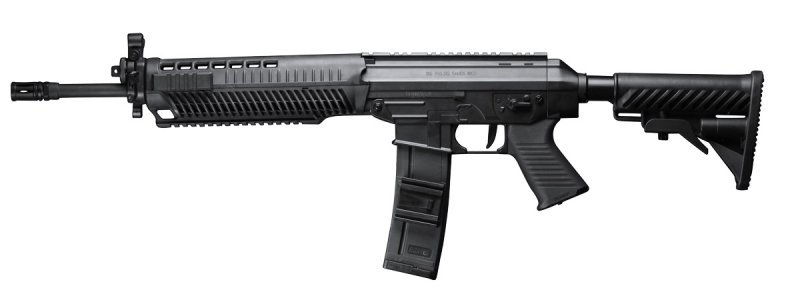 Ny välgjord softairgunreplika på en ny modell från Sig Sauer. Sig 556 är en vidareutveckling av systerföretagets Swissarms SG 551 och har bla en utfällbar teleskåpstock. Geväret utvecklades dels för att möta kraven från marknaden i USA. Den riktiga modellen har fått mycket gott mottagande, bl.a. för att den kan laddas med magasin från M16-gevär. Denna eldrivna softairgunversionen har gearbox tillverkad i metall och justerbar Hop-Up. Levereras komplett med laddbart batteri och laddare.