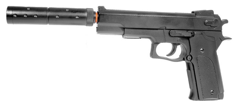 Fjäderdriven pistol ur Powerserien, utrustad med det välkända Hop-Up systemet. Magasinet rymmer 14st kulor. Anslagsenergi 0,5J. Bestyckad med en häftig ljuddämparatrapp. Pistolen har en vikt på 500g. Utgångshastighet 86m/s.