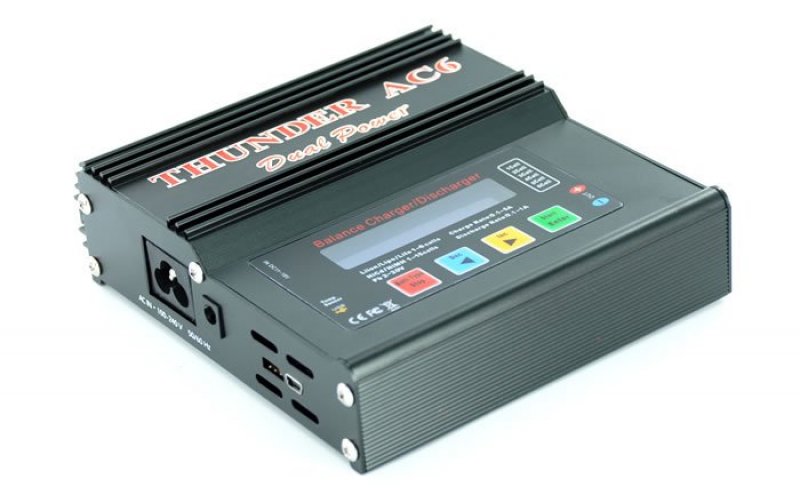 BALANCE CHARGER/DISCHARGER LILON/LIPO/LIFE 1-6 CELLS NICD/NIMH 1-15 CELLS CHARGE RATE: 0.1-5A DISGHARGE RATE: 0.1-1A TEMP SENSOR USB 6 KABLAR 240V & 12V