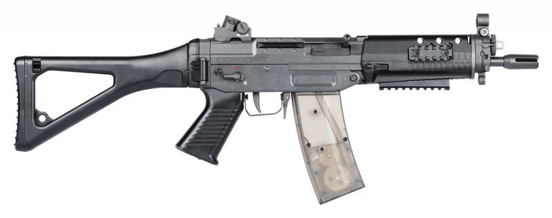 Sig 552 Commando är mycket omtyckt modell som nu kommer i en eldrivet utförande. Vapnet har fällbar kolv och en kompakt konstruktion med många delar i metall. 552 Commado har en bekväm kolv med flera möjligheter att montera tillbehör. Siktet är en väl fungerande dioptertrumma, ställbar för olika avstånd.
